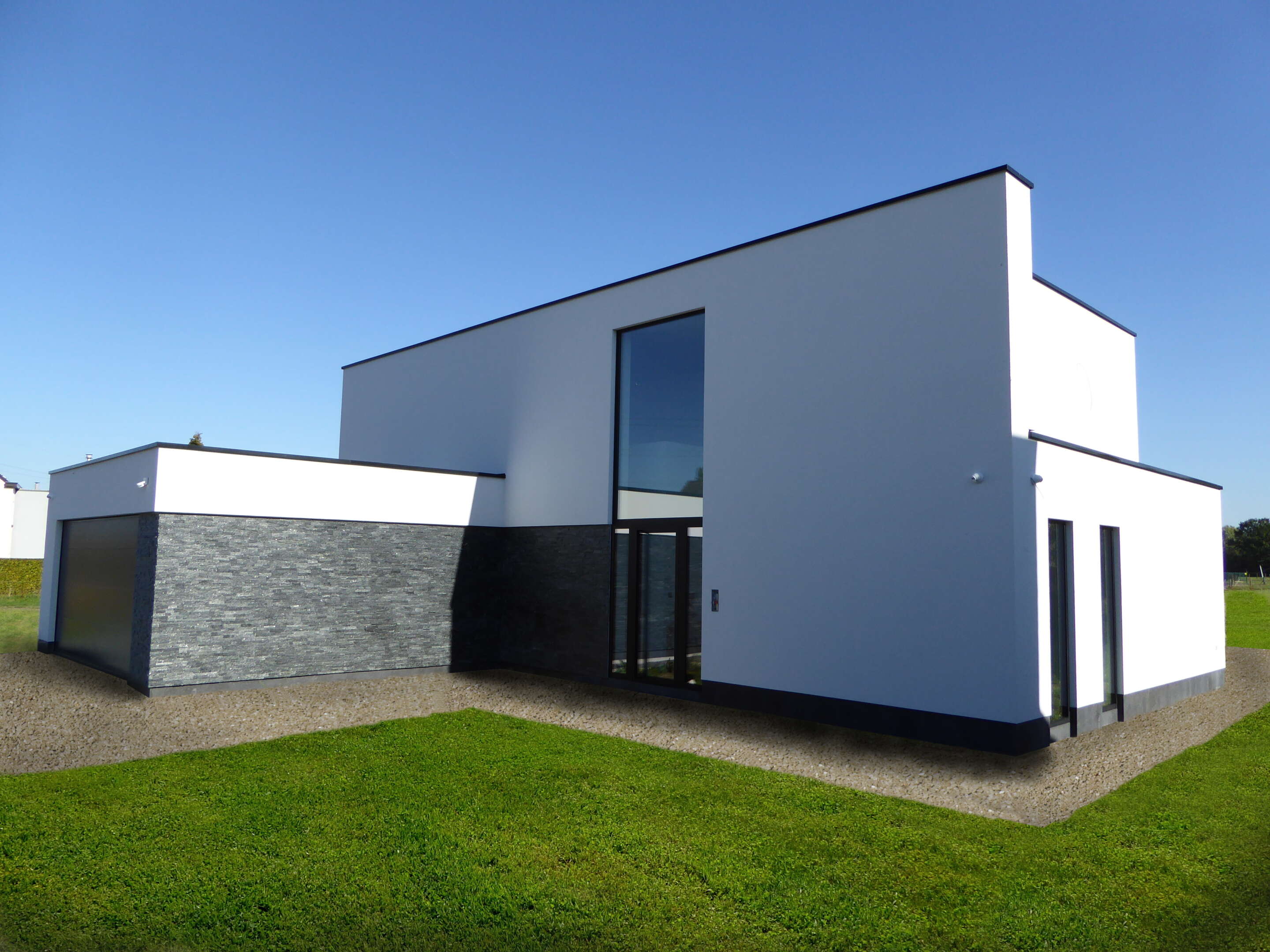 Het resultaat is deze stoere villa met platte daken te Londerzeel.
